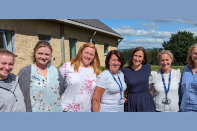 Nov / 2023 Colleagues from Somerset's Post COVID-19 Assessment Service stood on steps following a meeting.